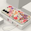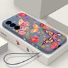 Чехол для телефона с бабочками и цветами для Samsung Galaxy A56 A17 A26 A16 A36 A55 A54 A53 A15 S24 S25 FE S25 S22 S23 Ultra Plus со шнурком, мягкая накладка
