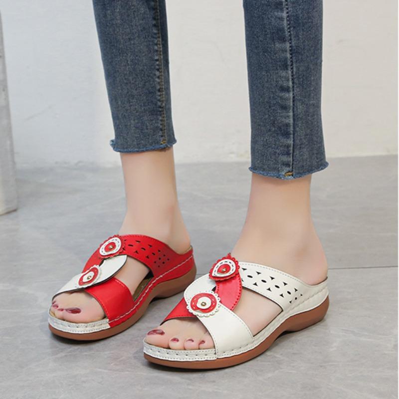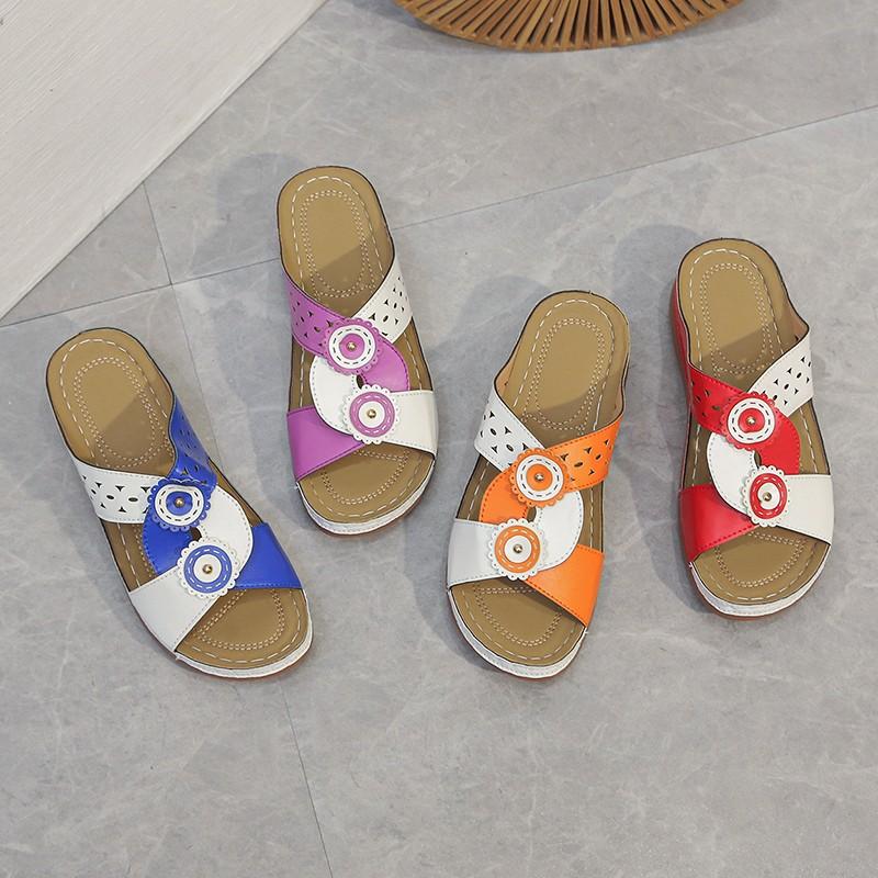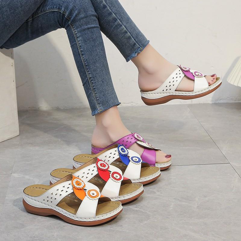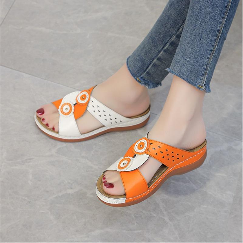 Модная обувь больших размеров для женщин 2024 года, летние винтажные женские тапочки с открытым носком на танкетке, нескользящие кожаные сандалии на платформе в стиле ретро