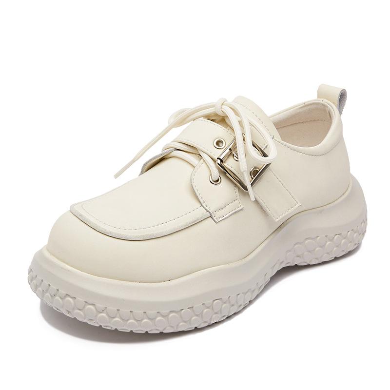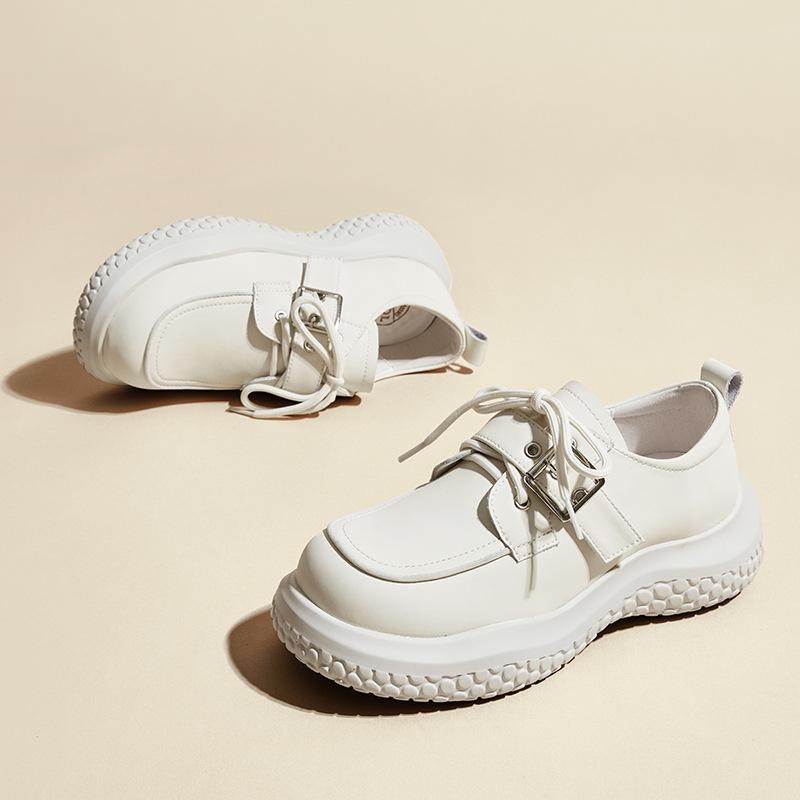 Мода Модные новые женские изысканные кожаные туфли из натуральной кожи женские повседневные универсальные белые туфли с толстым дном и круглым носком