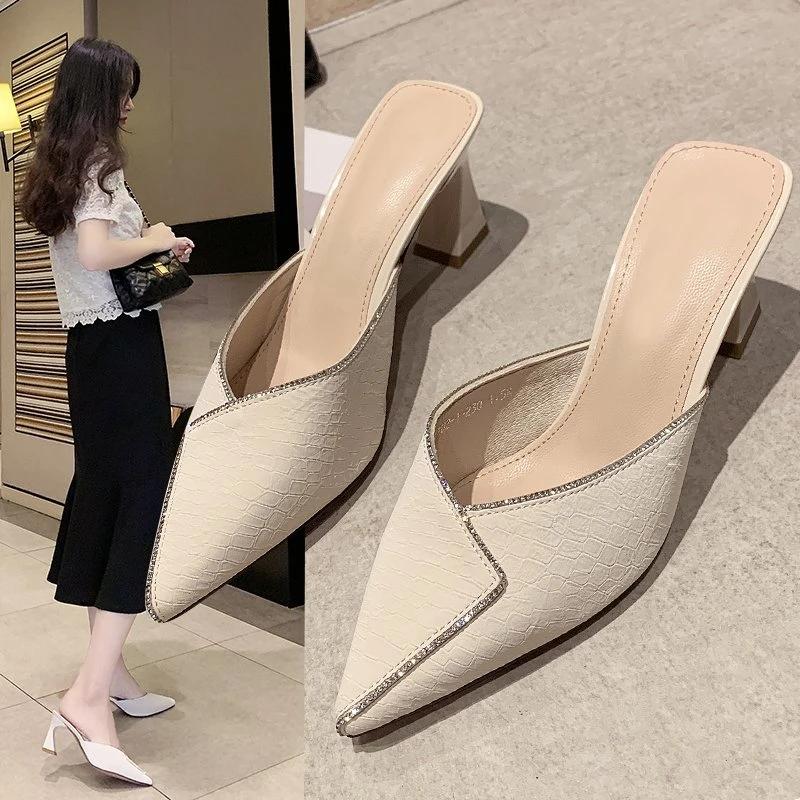 Мода 2024 года, новые женские тапочки Baotou, летние, в стиле феи, с острым толстым каблуком, женские тапочки на высоком каблуке — купить товар онлайн с бесплатной доставкой по всему миру!