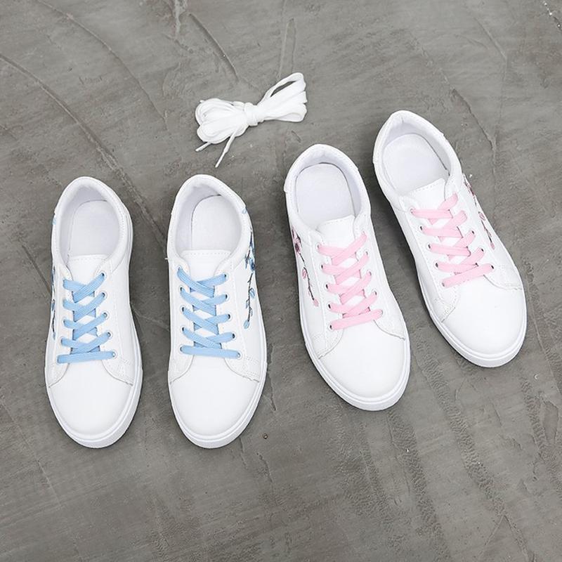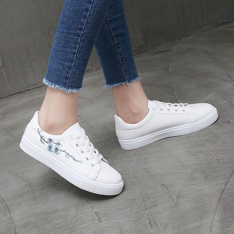 Модные спортивные туфли корейские вышитые повседневные весенние белые женские студенческие туфли на плоской подошве тип верха материал посадка форма носка модный элемент