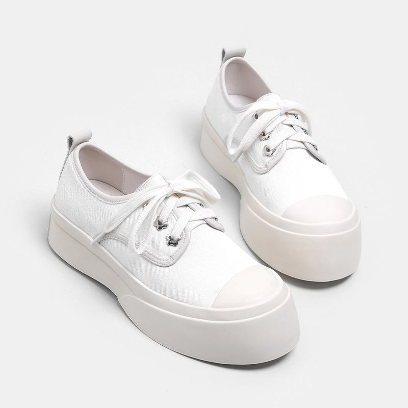 Модные летние разноцветные ретро-модные туфли на шнуровке из парусины, женские изысканные высококачественные повседневные туфли на толстой подошве белого цвета