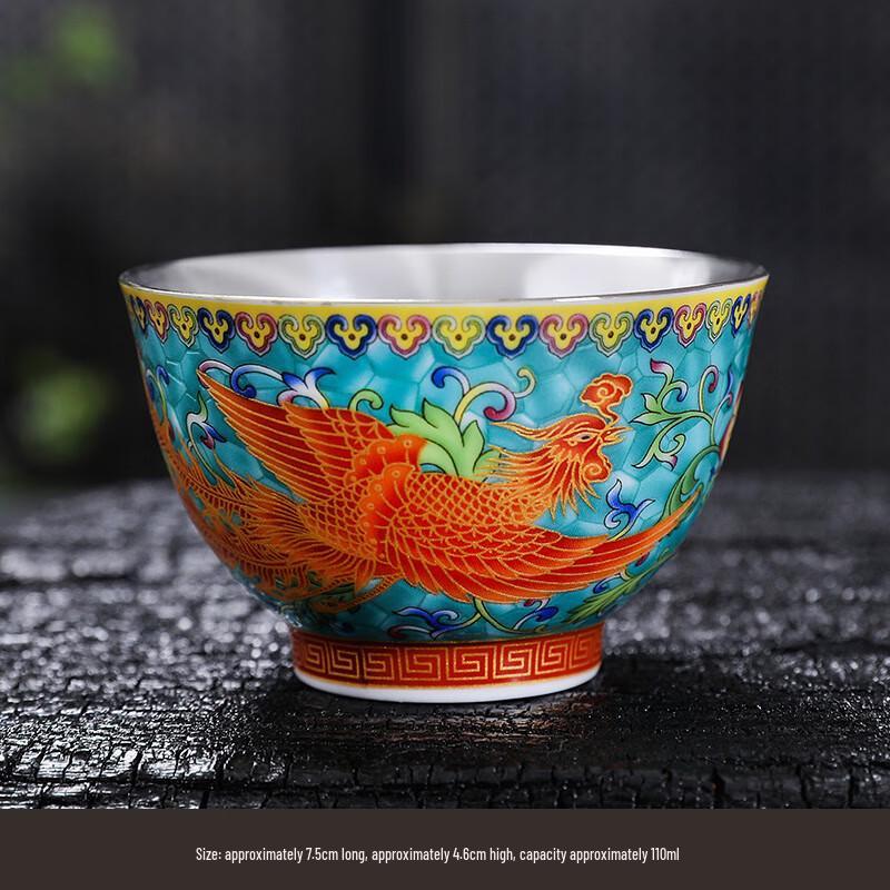 Chaxun Handmade Silver-Plated Enamel Phoenix Tea Cup