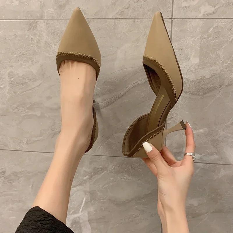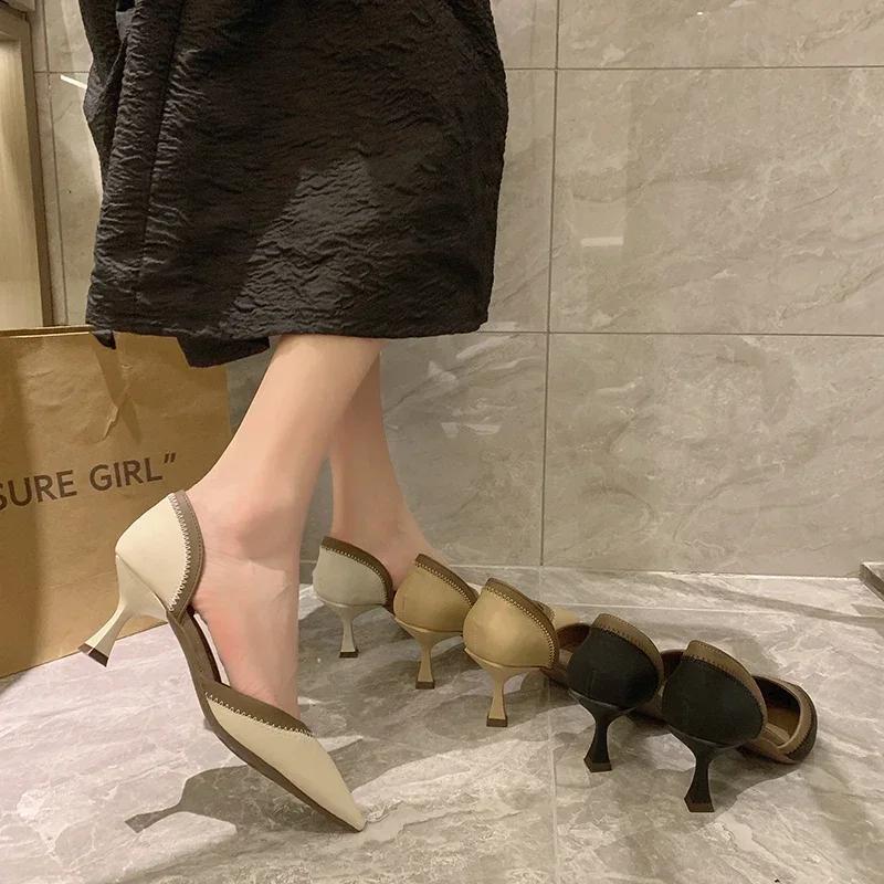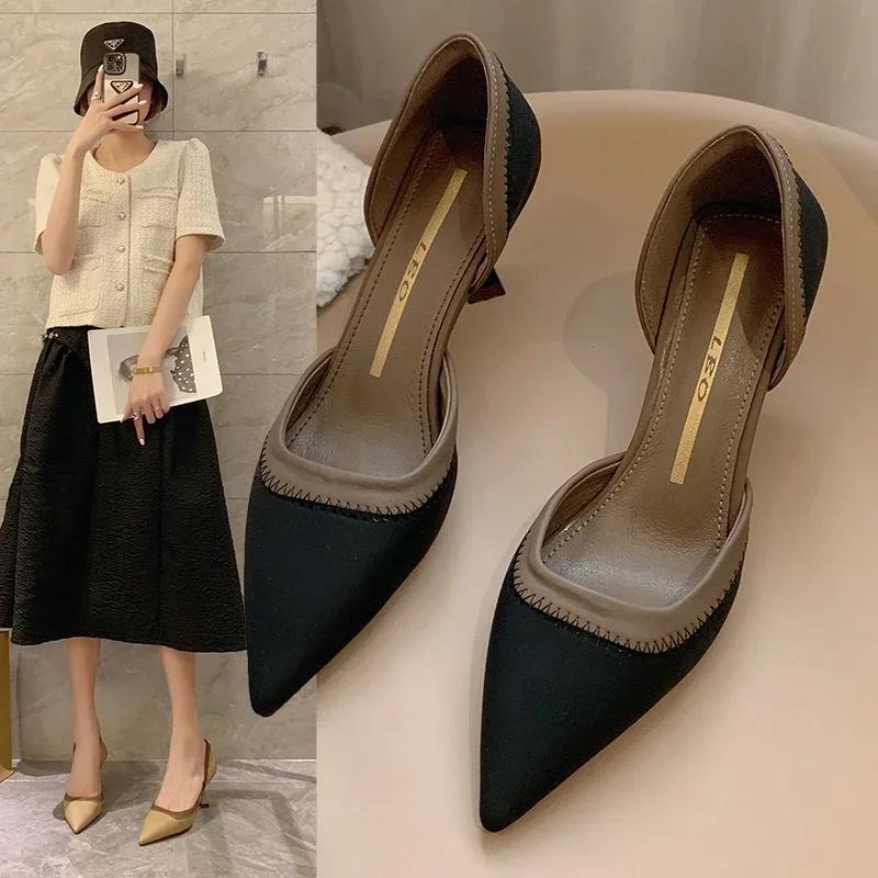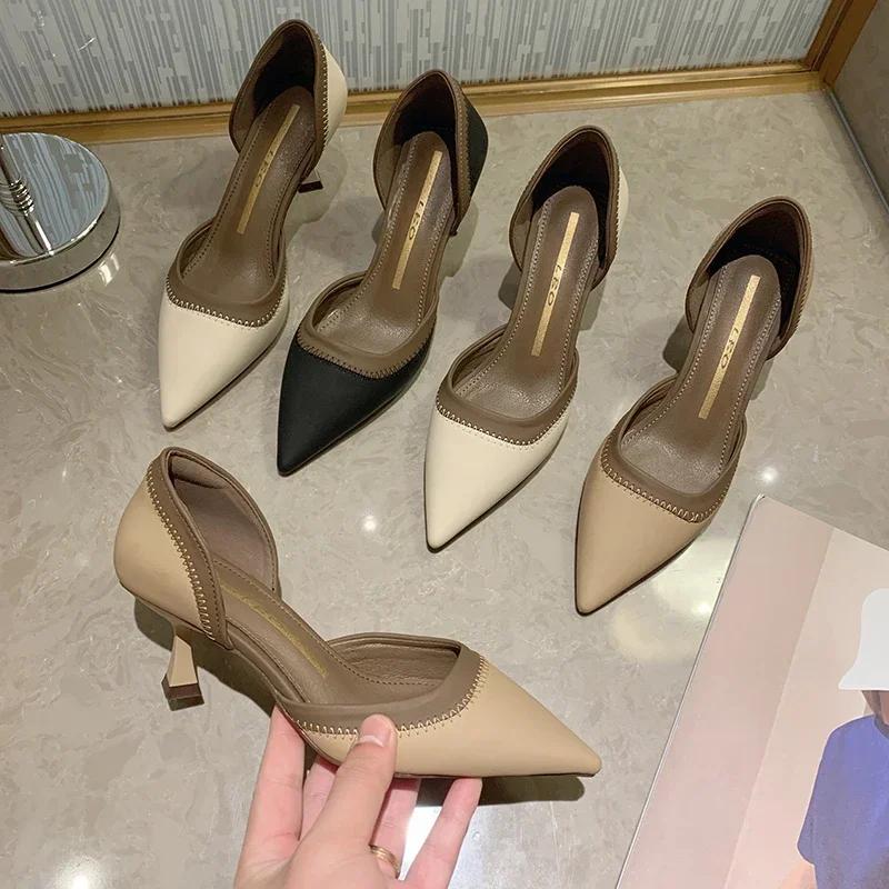 Мода 2024 года, новые мягкие кожаные туфли на высоком каблуке, весна/лето, сексуальные туфли с острыми тонкими каблуками, цветные одинарные туфли, женская рабочая обувь