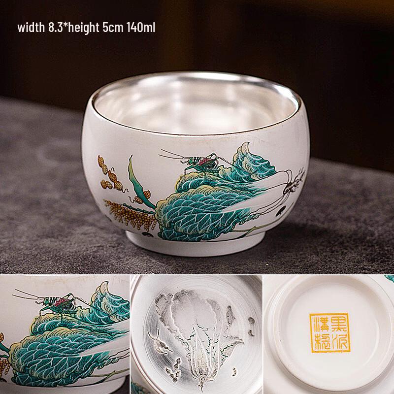 Chaxun Gilded Silver Enamel Cabbage Teacup