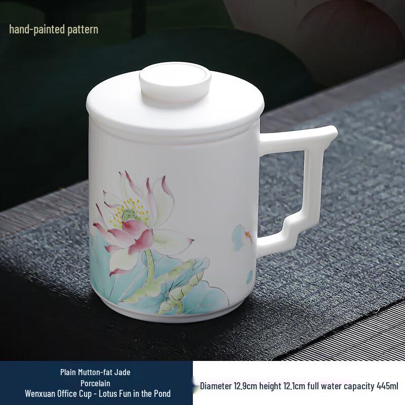 Hand-Painted Dehua Porcelain Tea Mug with Clear Filter