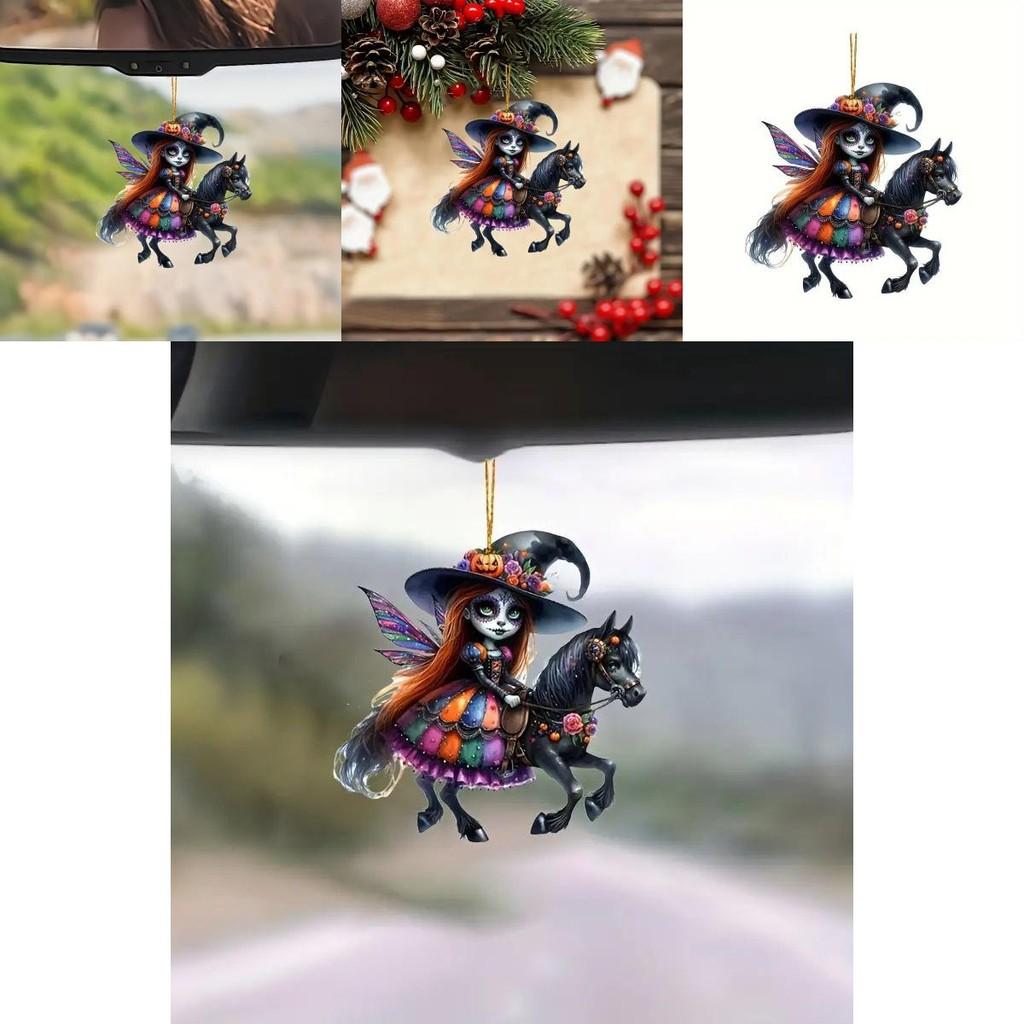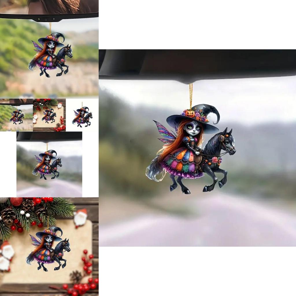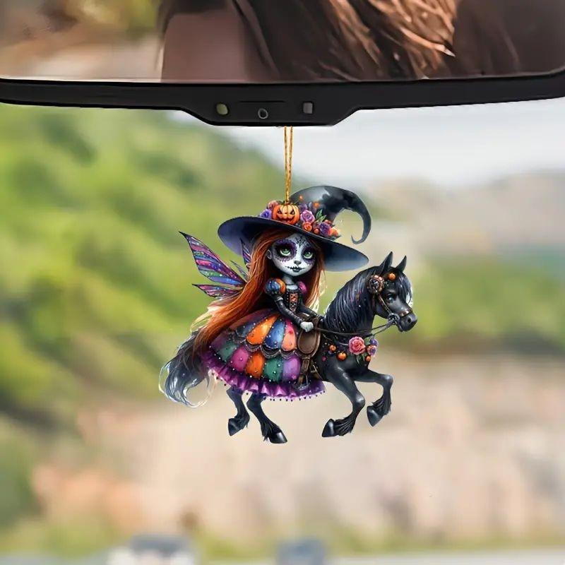 Colorful Cartoon Witch Car Hanging Ornament For Spooky Halloween Interior Decor