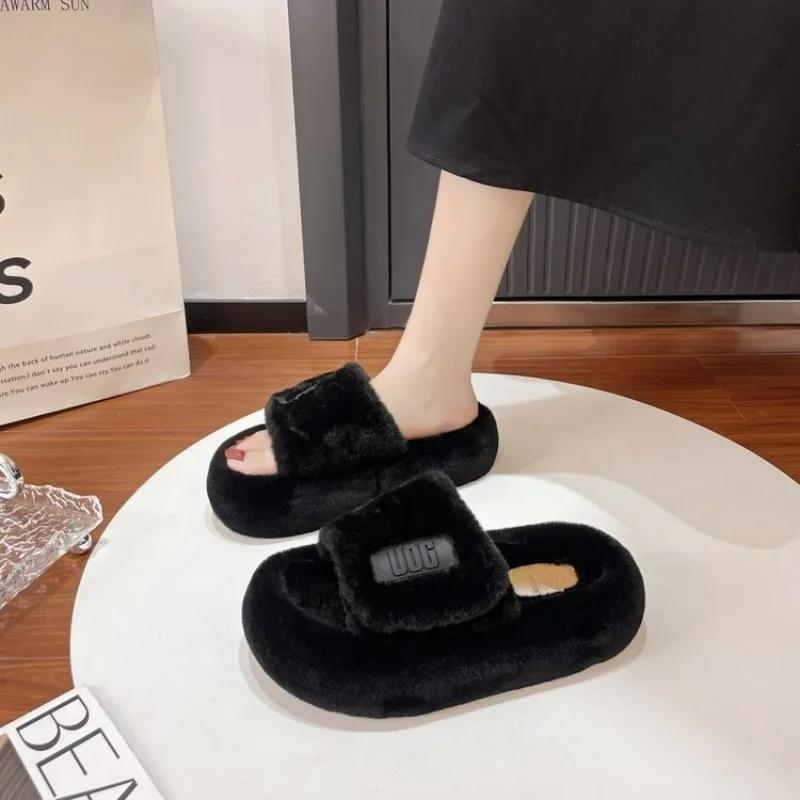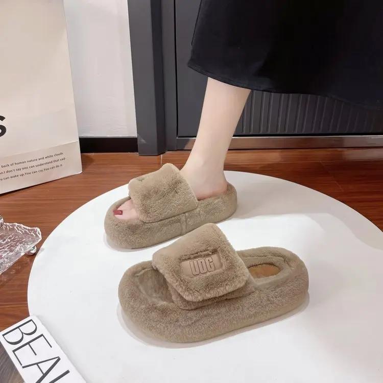 Мода 2024 года, новые плюшевые тапочки на толстой подошве, увеличивающие рост, для женщин, осень и зима, модные домашние плюшевые тапочки