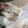 Мода 2024 года, высококачественная женская обувь, летние модные однотонные повседневные босоножки с открытым носком и пряжкой на высоком каблуке для женщин