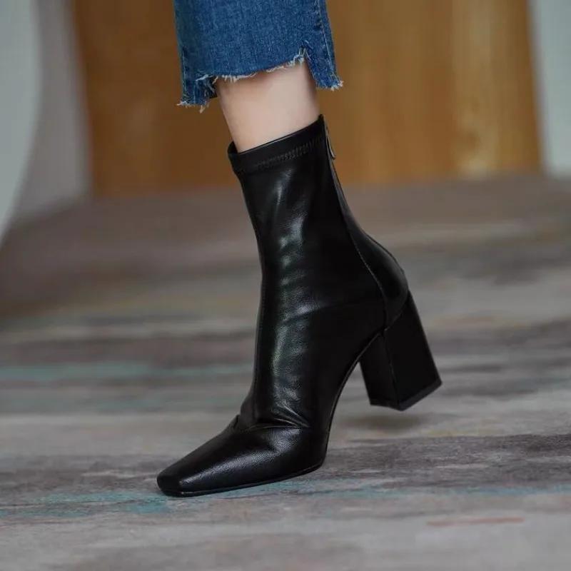 Модные осенние женские туфли на каблуке, новые модные ботильоны с острым носком и толстым каблуком для женщин, ботинки челси, женские сапоги на молнии под платье