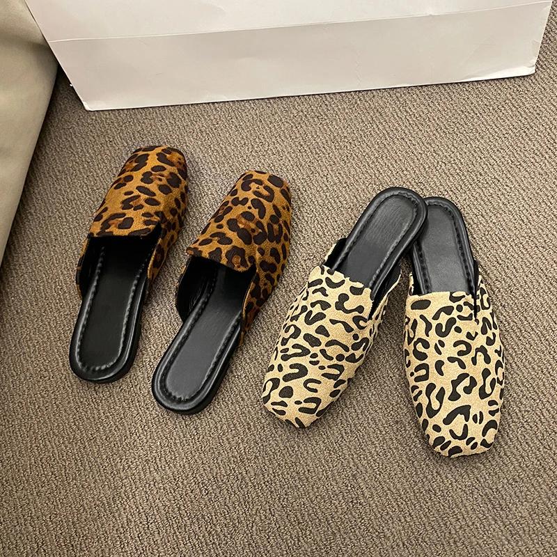 Мода 2024 года, женские мюли с леопардовым принтом, тапочки, балетки, замшевые летние с квадратным носком, дизайнерские уличные сандалии с открытой пяткой, сланцы Zapatos Mujer