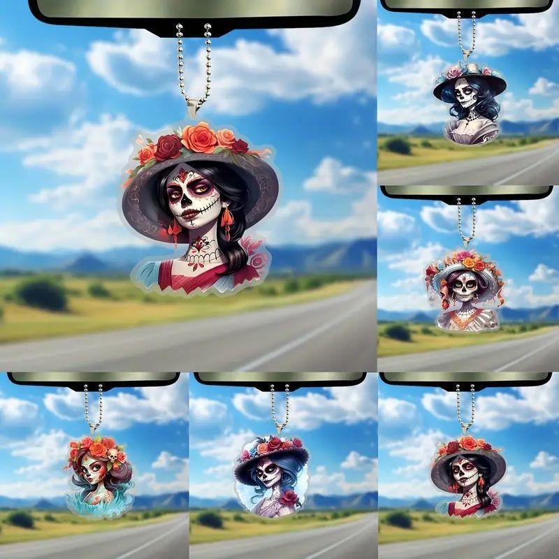 Красочная акриловая мультяшная кукла-скелет, плоское украшение, идеально подходит для Хэллоуина и праздничных автомобильных аксессуаров