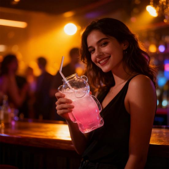 Дизайн в форме 3D медведя: Поднимите свои впечатления от напитков с помощью уникального дизайна в форме медведя этого милого стеклянного стакана в форме медведя, добавляющего нотку очарования любой обстановке.