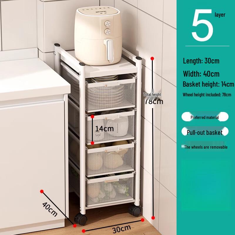 Узкая многоярусная кухонная тележка для хранения
