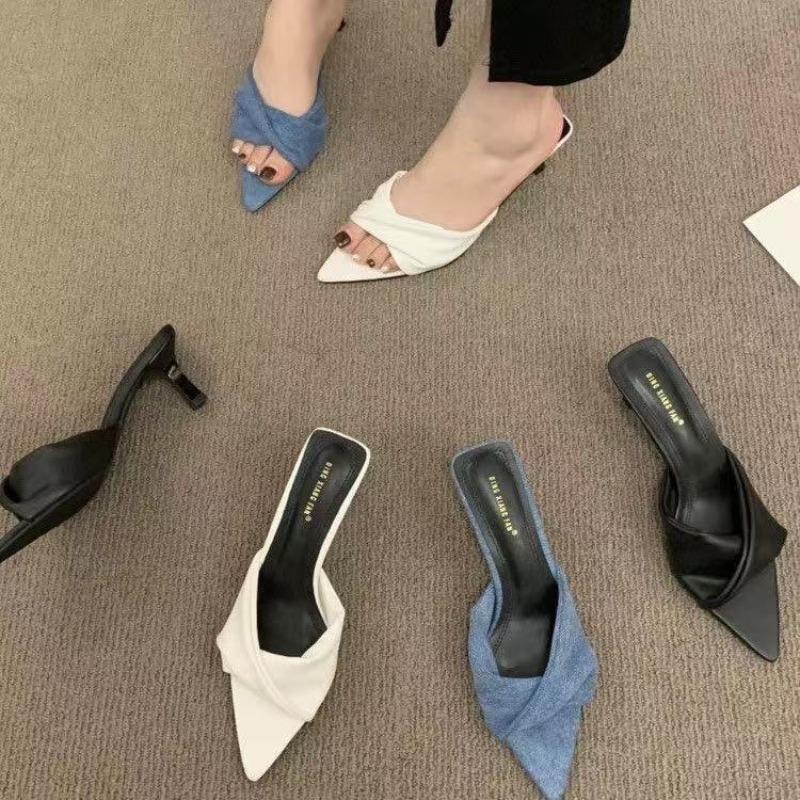 Модные Hlieny Уютные Белые Кожаные Остроносые Дизайнерские Низкие Тонкие Каблуки Мюли Тапочки для Женщин Обувь Туфли Женские Слингбэки Сандалии Слайды