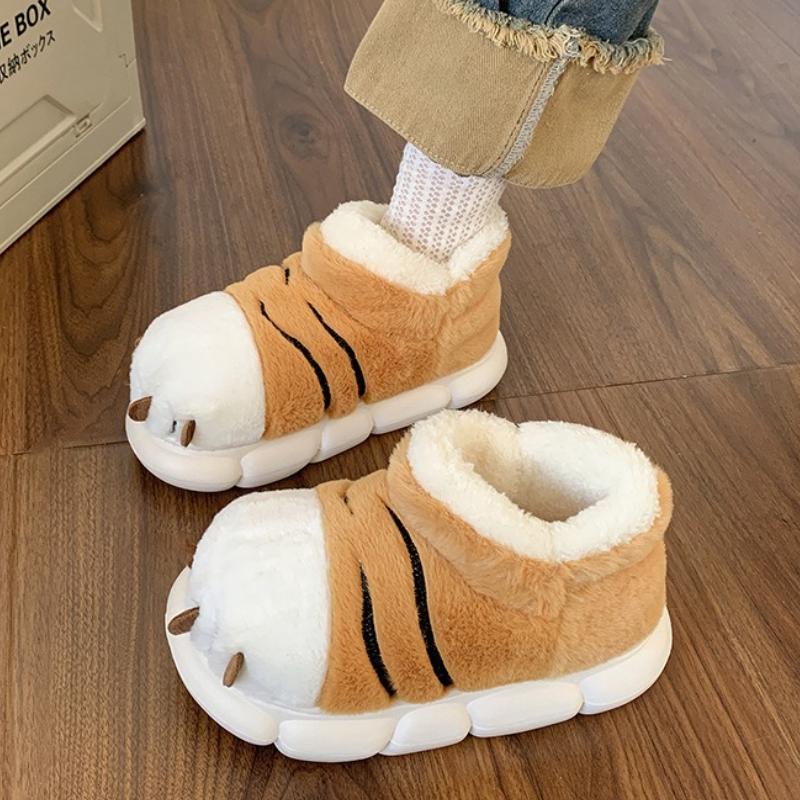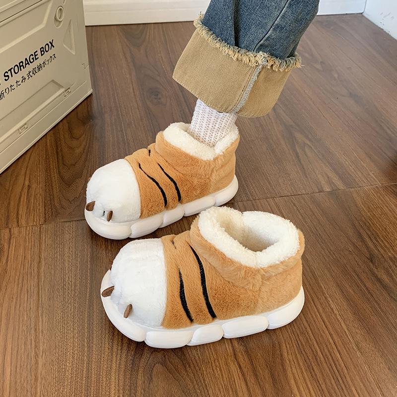 Модные милые мультяшные пушистые тапочки для женщин и мужчин, зимняя теплая обувь, домашний стиль для пола, мягкие плюшевые тапочки с тигровой лапой для пар, хлопковые тапочки