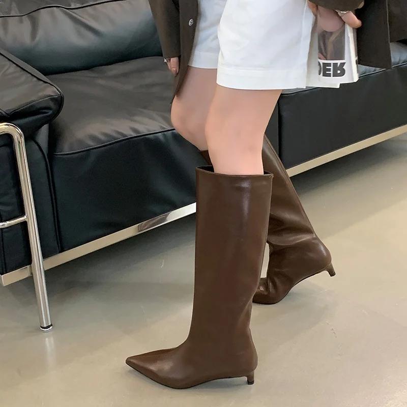 Модные осенне-зимние сексуальные женские ботфорты до колена, уличный стиль, острый носок, тонкий низкий каблук, повседневная обувь для вечеринок — купить товар онлайн с бесплатной доставкой по всему миру!