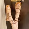 Мода 2025 Французский стиль Плоские римские сандалии Женские Летние Новые Дышащая сетка Слипоны Повседневная пляжная обувь Металлический декор Римский стиль