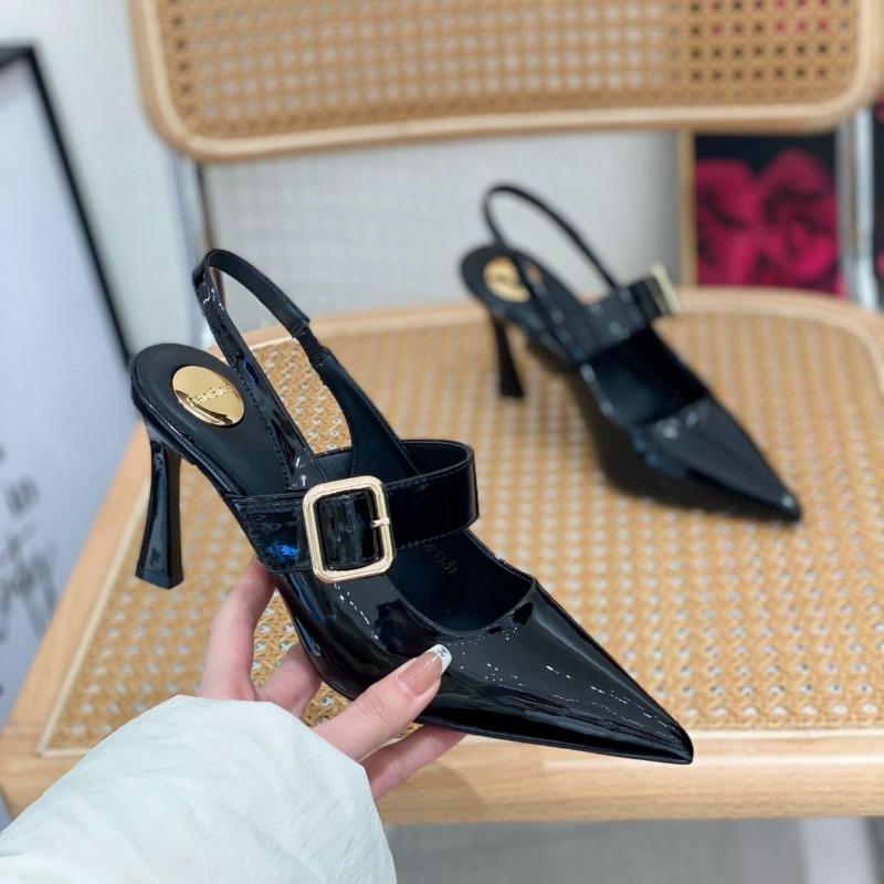 Модные лакированные кожаные туфли-лодочки на высоком каблуке для женщин, тонкий каблук для весны/лета, новый стиль, нишевые сандалии с пряжкой-ремнем, одинарные туфли