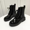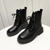Мода Женщины 2024 Весна Осень Новые Короткие Ботильоны Леди Водонепроницаемые На Шнуровке Черные Ботинки Студенты Повседневные Толстый Каблук Рыцарские