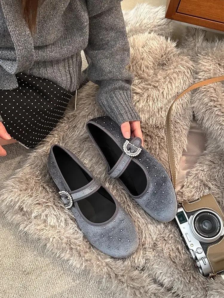 Модные туфли на плоской подошве с мягкой подошвой, весенняя новинка, с круглым носком, с неглубоким вырезом, из фланели с блестками, с надписью, противоскользящие, износостойкие, одинарные туфли