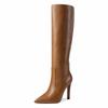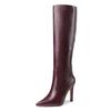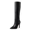 Модные западные ботфорты до колена Женская мода Острый носок Высокий каблук Женские туфли для вечеринок Женские зимние длинные сапоги Кожа Элегантная осень