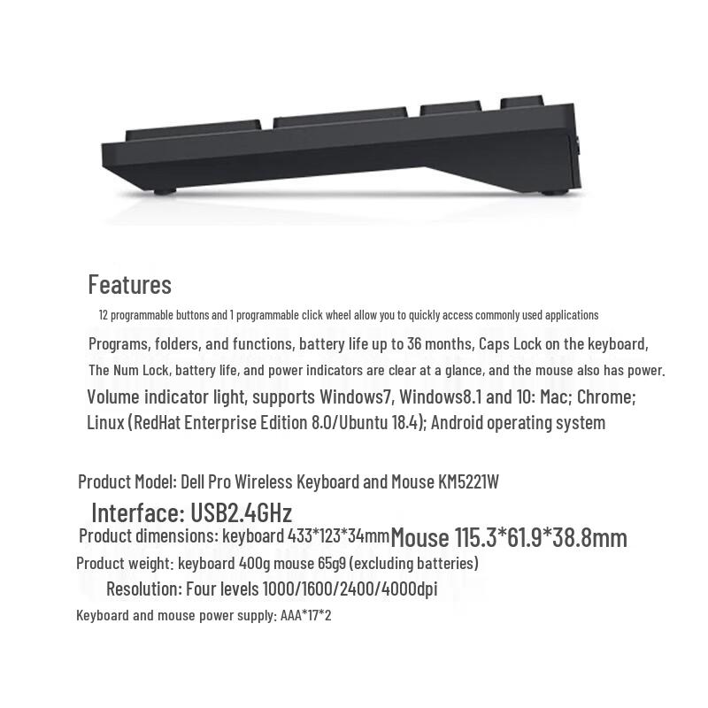 Dell KM5221W Wireless Keyboard and Mouse Set