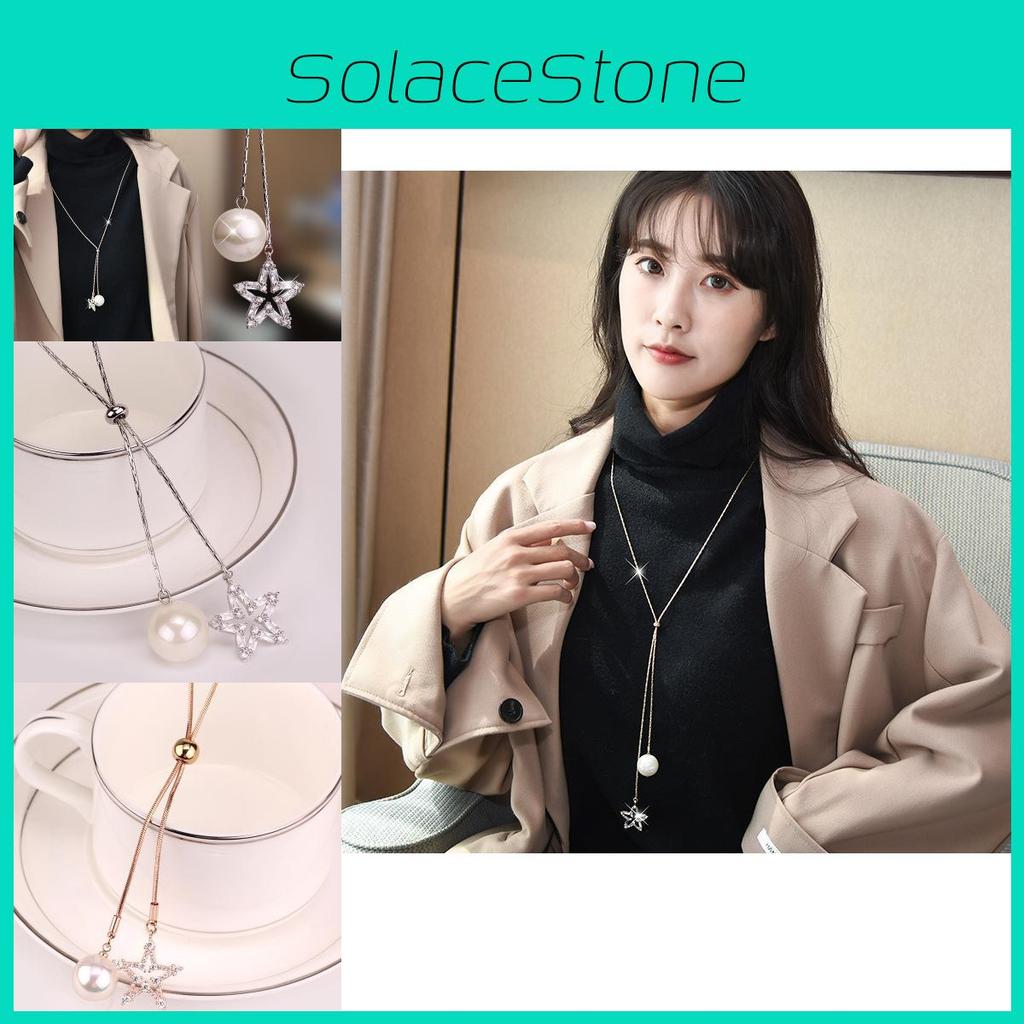 Модное ожерелье на длинной цепочке с кулоном в форме звезды и жемчугом, сверкающий дизайн