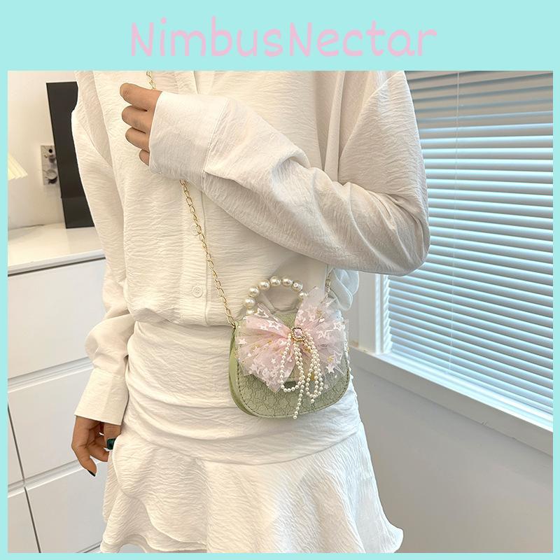 Trendy Saddle Shaped Handbag For Kids With Pearl Accents Ideal Birthday Gift