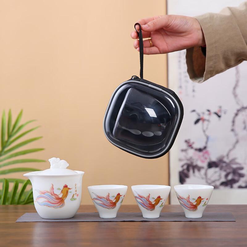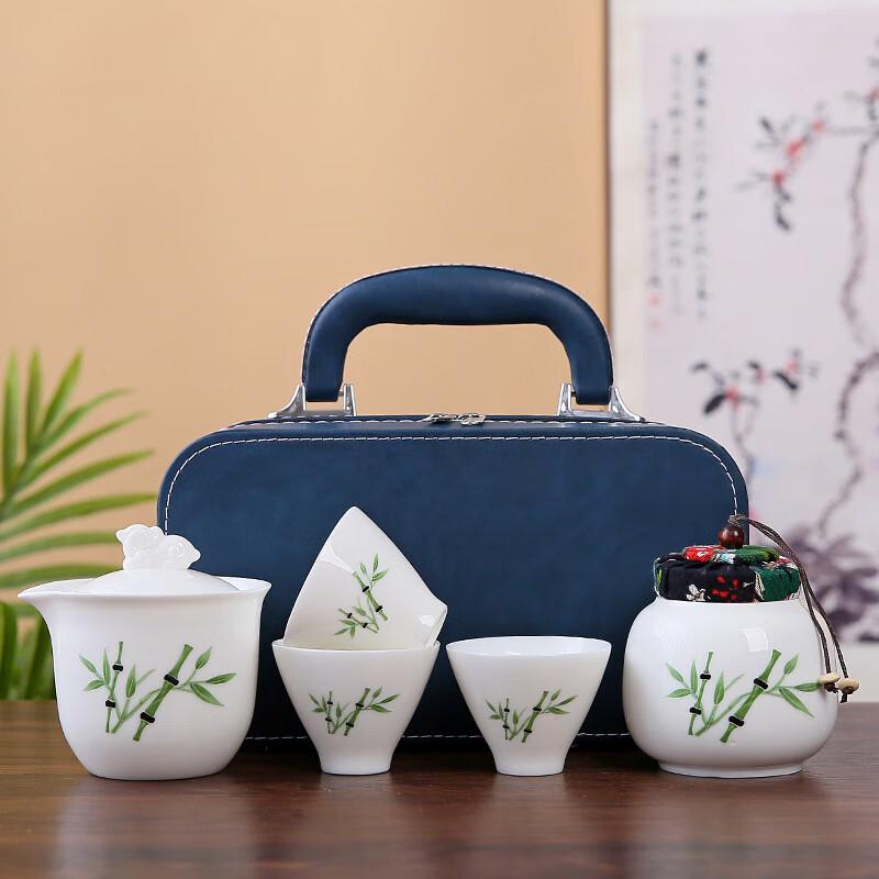 Shangqi Blue Peony White Porcelain Portable Tea Set