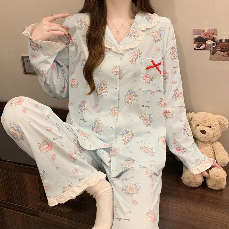 Женская пижама из имитации хлопка, кардиган с длинным рукавом, с принтом комичного кота, высококачественный комплект для дома с бантом, весна-осень — купить товар онлайн с бесплатной доставкой по всему миру!