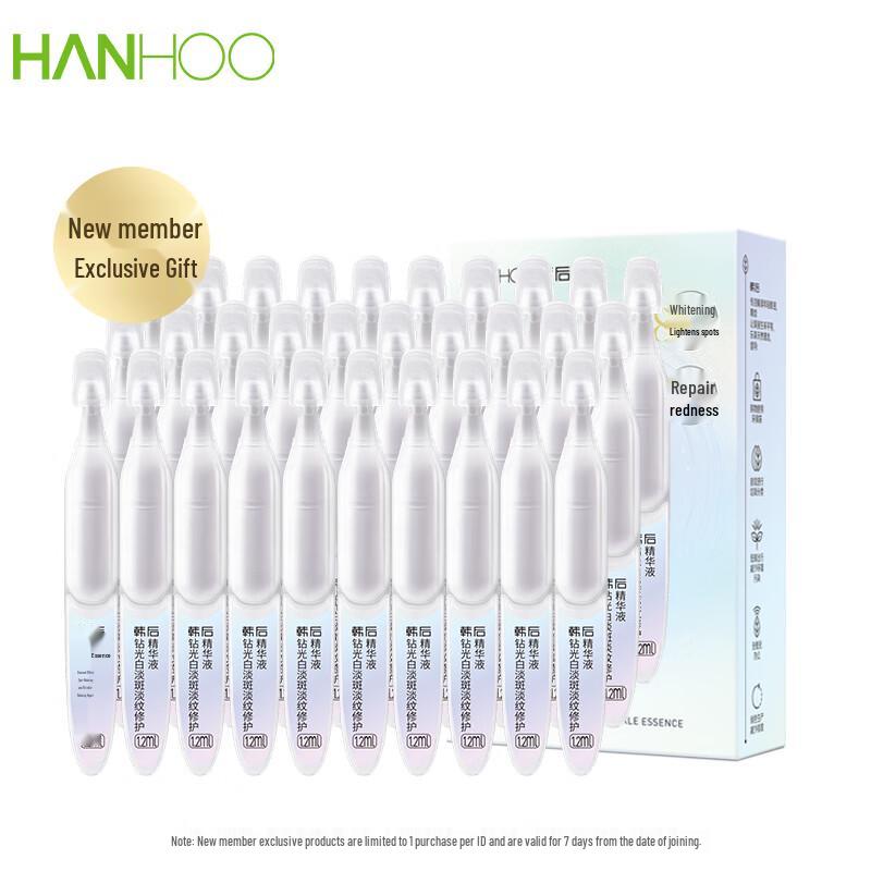 Experience the transformative power of Hanhoo Diamond Lightening Spot & Wrinkle Repair Essence. This specialized formula is designed to visibly fade dark spots, diminish fine lines, and smooth wrinkles. It also works to brighten skin tone, enhance hydration, and improve overall skin texture, making it suitable for a variety of skin types for a radiant and youthful complexion.