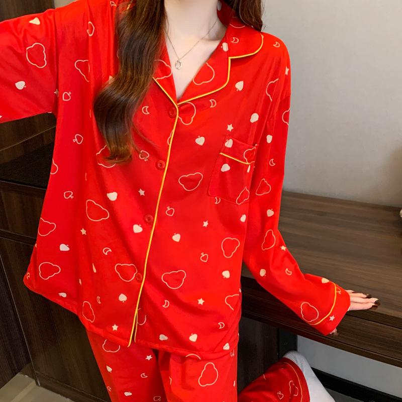 Пижама женская весенняя новая с принтом облаков, с длинным рукавом, рождественская, большая красная, домашняя одежда, комплект из двух предметов, можно носить на улице