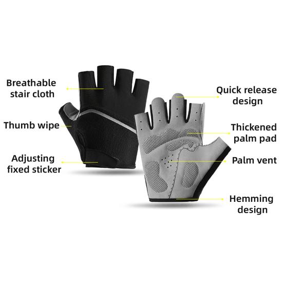 Эти перчатки предлагают ряд защитных функций, подходящих для различных спортивных условий, обеспечивая как безопасность, так и комфорт.. Дизайн ткани для пота на большом пальце включает деликатную махровую ткань для эффективного впитывания пота, не раздражающую кожу, что делает его удобным для вытирания пота во время поездок..