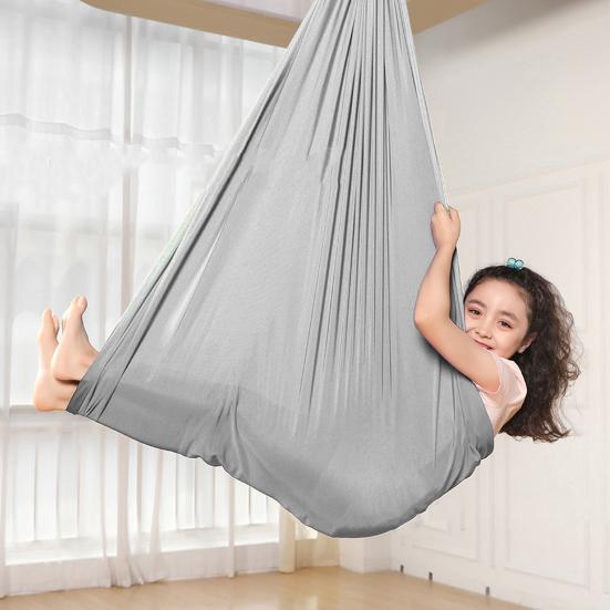 Легкий и дышащий нейлоновый материал.: Эта эластичная ткань, изготовленная из дышащего нейлона, мягко окутывает детей, создавая ощущение прохлады, мягкости и воздухопроницаемости.. Легкий вес гамака позволяет детям комфортно воспринимать окружающую среду, наслаждаясь успокаивающими преимуществами компрессионной терапии.