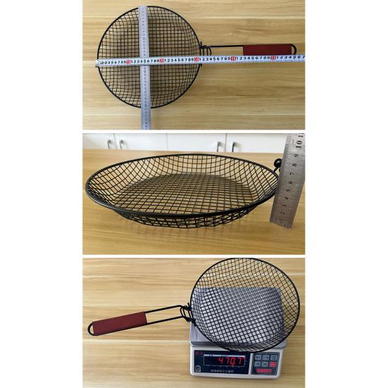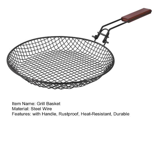 Эта корзина, изготовленная из высококачественной углеродистой стали, рассчитана на длительный срок службы.. Он не ржавеет, устойчив к высоким температурам и сохраняет форму без деформации.. Плотная решетка и прочные паяные соединения обеспечивают отличную несущую способность, предотвращая соскальзывание продуктов во время приготовления на гриле.