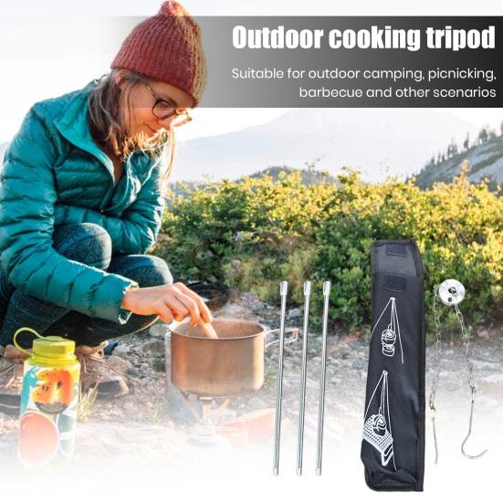 Подставки для кастрюль — это универсальные приспособления для приготовления пищи на открытом воздухе, идеально подходящие для подвешивания жаровен, грилей и кастрюль над костром.. Идеально подходит для различных видов активного отдыха, таких как кемпинг, барбекю и пикники.