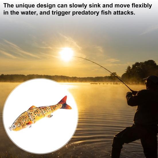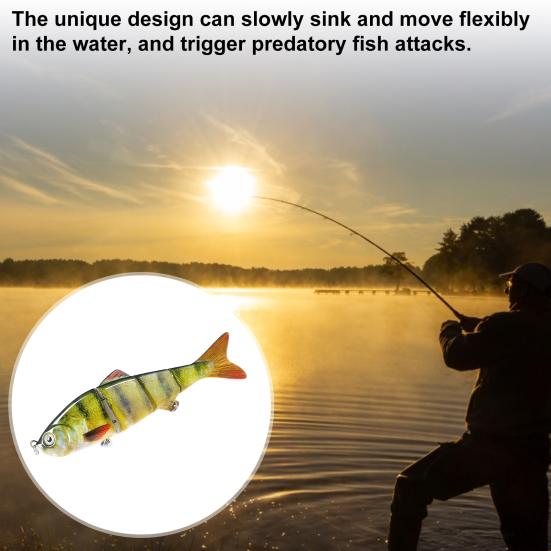 With its 3D realistic eyes, seven-section design, and vibrant colors, this lure is guaranteed to attract larger fish. Its vivid features make it highly reliable and efficient, providing you with a unique and exciting fishing experience.