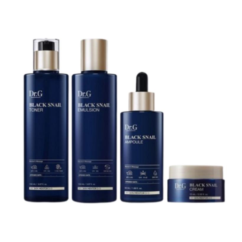 The Dr.G Black Snail Prestige Set delivers a complete premium anti-aging routine powered by Black Snail Extract. Each product helps repair damaged skin, improve elasticity, and enhance moisture retention. This 4-step solution revitalizes tired skin, smooths fine lines, and restores a healthy, luminous complexion.