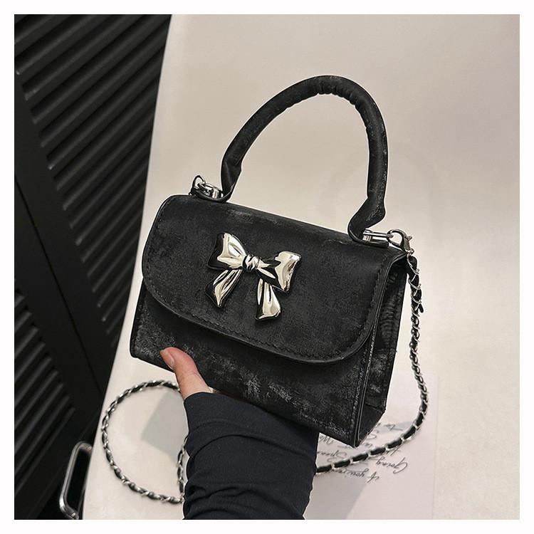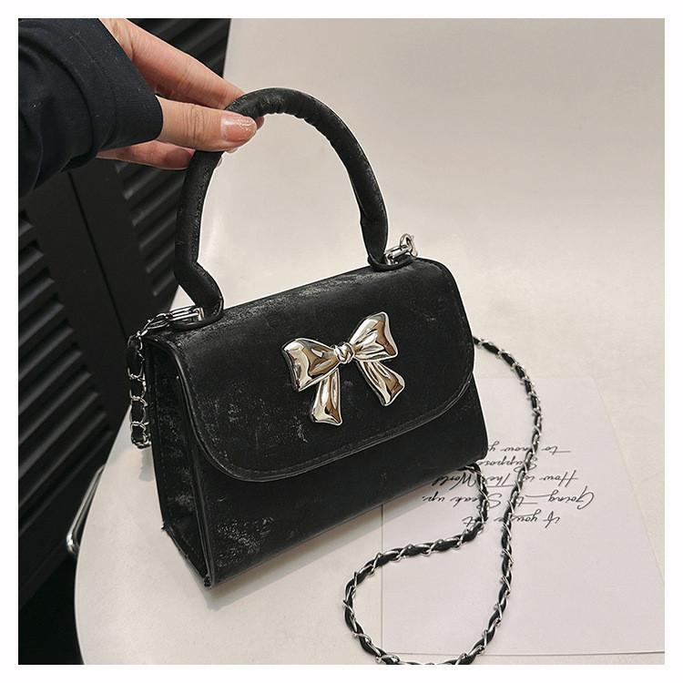 Spring Fashion Retro Butterfly Knot Shoulder Bag Street Style Pu Handbag Black White Pink Green