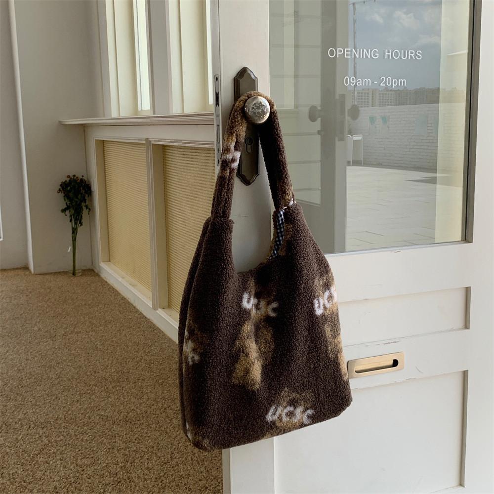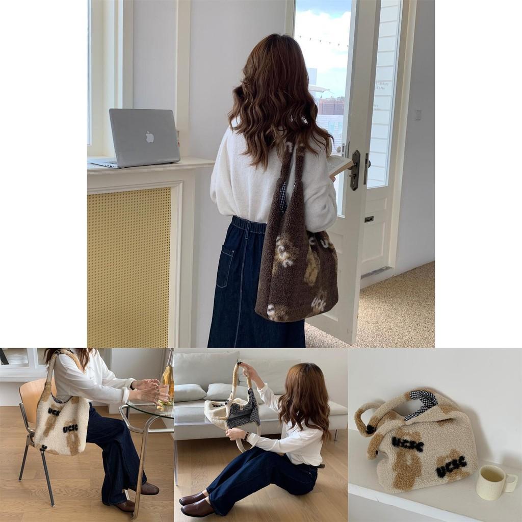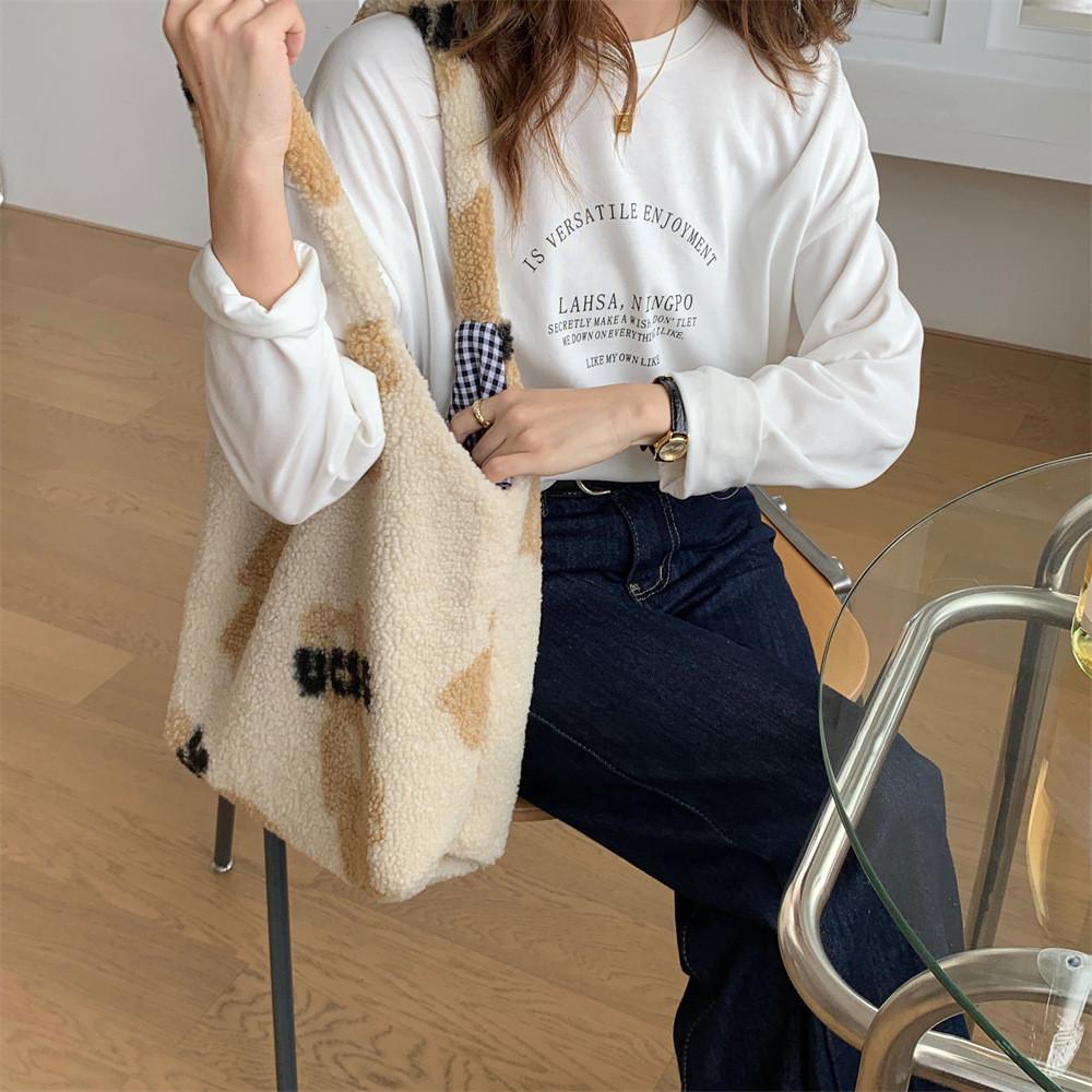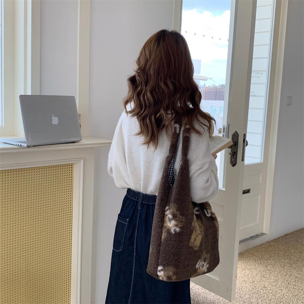 Милый плюшевый мишка, большая вместительная сумка через плечо, уютная сумка-тоут из овечьей шерсти для девочек