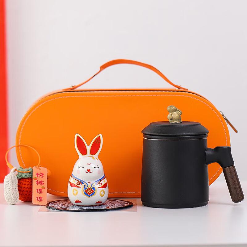 Auspicious Jade Rabbit Ceramic Tea Mug Gift Set — купить товар онлайн с бесплатной доставкой по всему миру!
