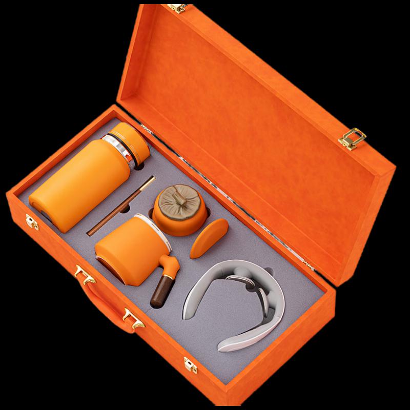 Vibrant Orange Ceramic Thermos Cup Gift Set