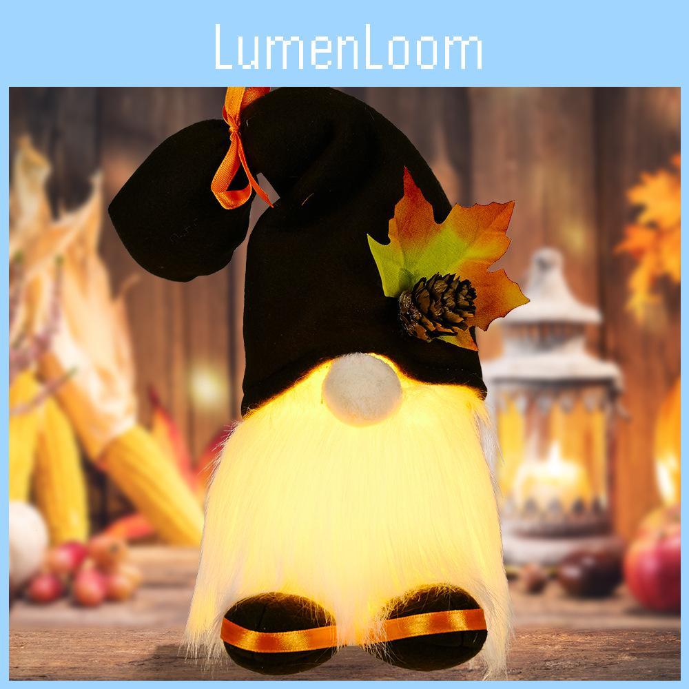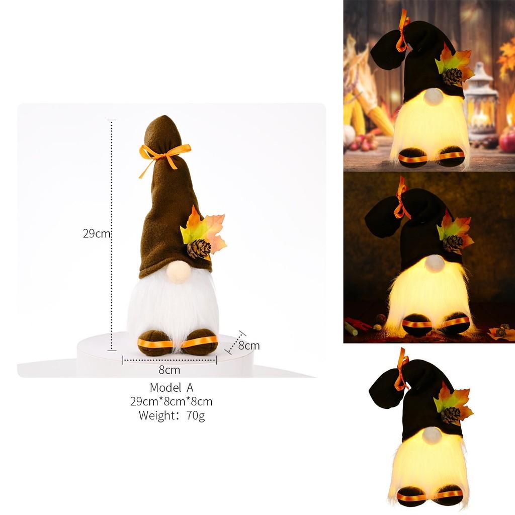 Уникальный дизайн: Этот предмет декора имеет очаровательный дизайн куклы в виде кленового листа и сосновой шишки с подсветкой, идеально подходящий для добавления осеннего очарования вашему дому.