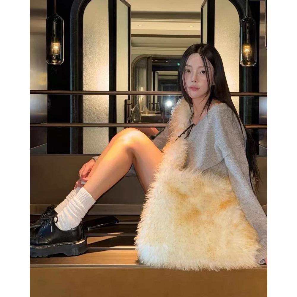 Осенне-зимняя плюшевая сумка-тоут, пушистая сумка, большая вместимость, сумка-мессенджер, сумка на плечо, зимняя пушистая сумка, женская