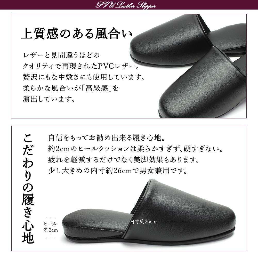 Набор из 5 пар роскошных тапочек с видом кожи [HYBRIDWORKS], антибактериальные, черные, прибл.. 26 см, Унисекс, Протираемый, Застежка,
