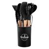 12PCS Silicone Kitchenware Non-Stick Cookware Kitchen Utensils Set Spatula Shovel Egg Beaters Wooden Handle Cooking Tool Set