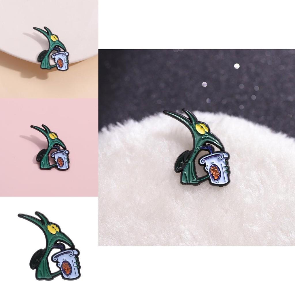 Очаровательная Мультяшная Животная Значок Креативная Сплавная Брошь Милый Монстр Дизайн с Напитком