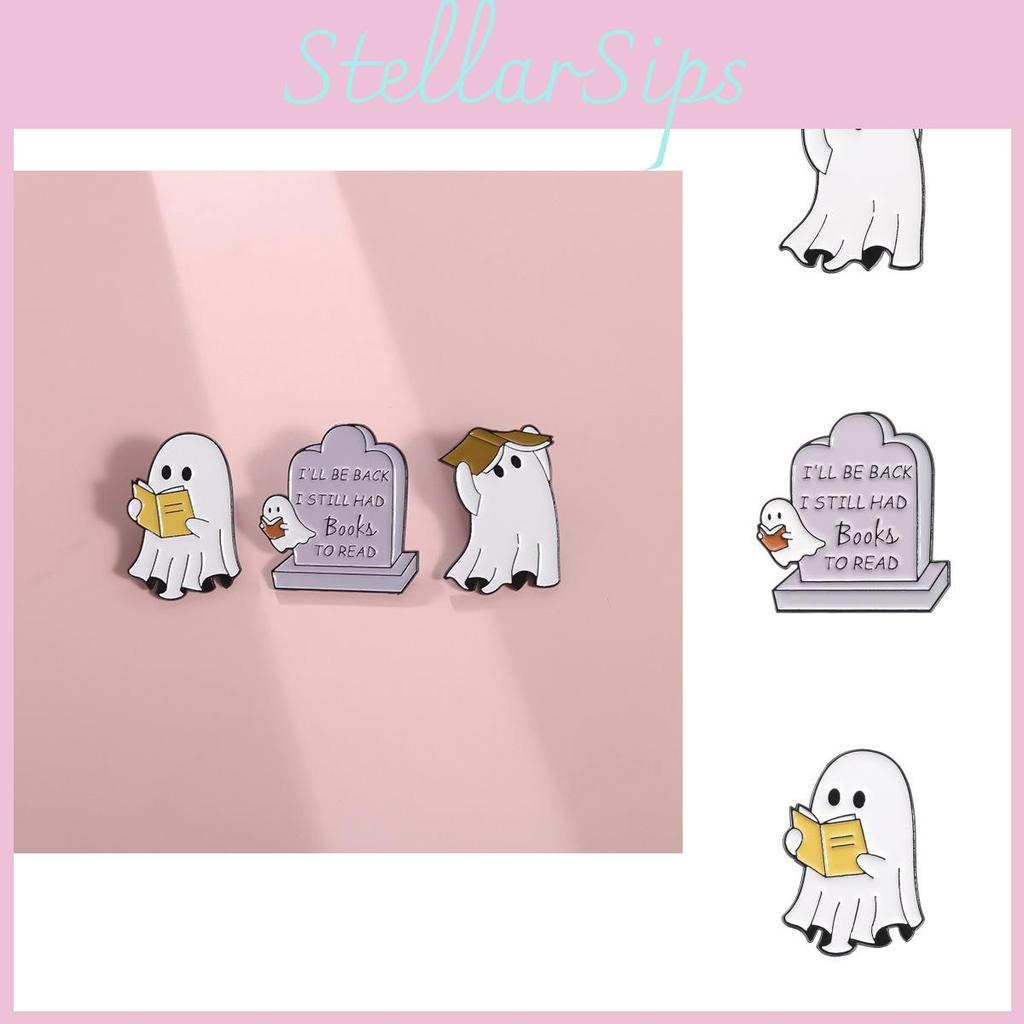 Cute And Quirky Cartoon Ghost Reading Series Alloy Brooch Fun Halloween Themed Pin