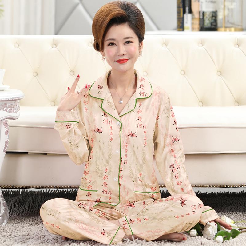 Весенне-осенняя пижама из имитации хлопка, женская, среднего и пожилого возраста, с длинным рукавом, простая и щедрая, темпераментная домашняя одежда, костюм для свекрови